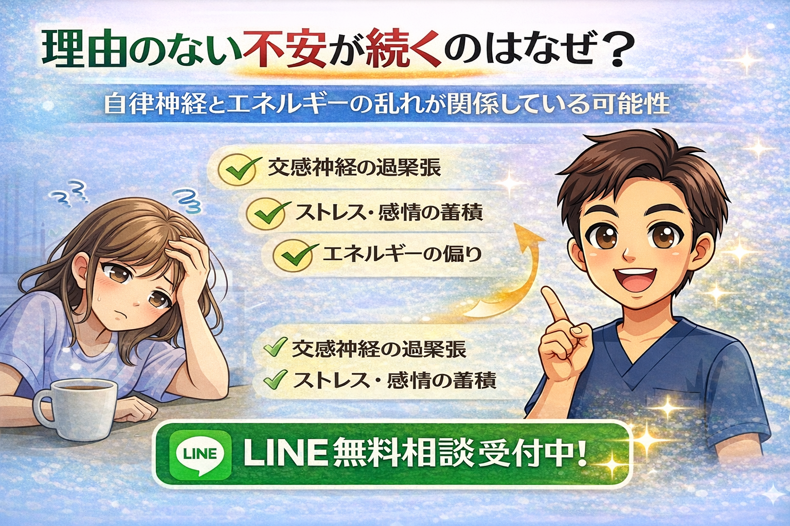自律神経の乱れやエネルギーバランスの偏りが関係していることがあります。
